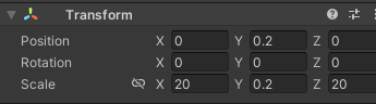 해당 좌표를 0, 0, 0으로 변경하여 보기 좋게 만들어줍시다. 값이 변경됨에 따라 씬 뷰에서 오브젝트가 움직이는 것을 확인하면 더 좋습니다.