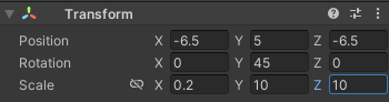 이제 각 Floor의 Transform 값을 조절하여 계단처럼 시각화하겠습니다. 각 Transform 수치는 다음과 같습니다.