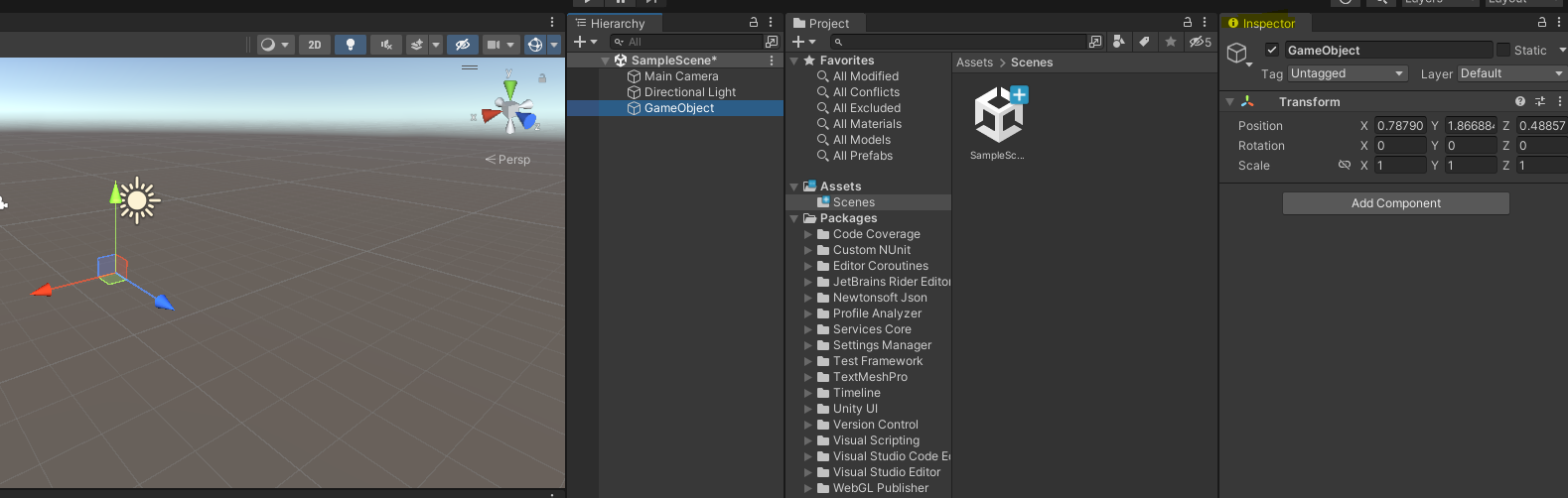 빈 게임 오브젝트를 생성하고 클릭하면 Inspector 창에 해당 오브젝트의 정보를 볼 수 있습니다.