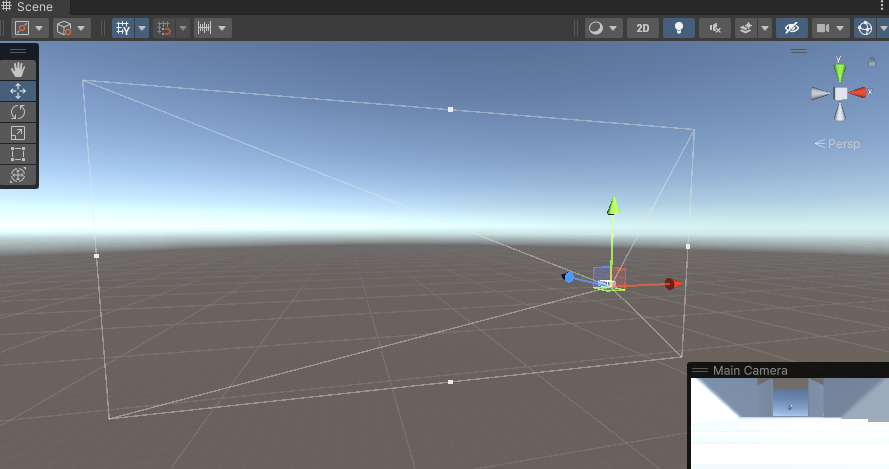 캬! 카메라도 이동시키고 영화의 한 장면 같네요! 그럼 게임을 실행시켜 볼까요? 재생버튼을 눌러 게임을 실행 시킬 수 있습니다. 하지만 아무일도 일어나지 않은 것을 확인할 수 있습니다. 왜일까요?