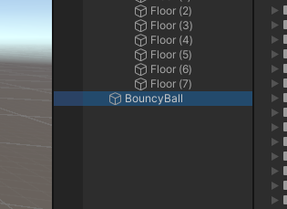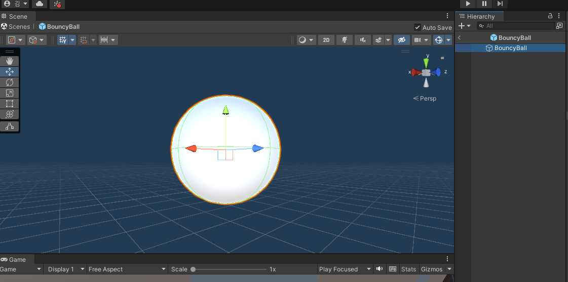 이전에 만들었던 Sphere의 이름을 BouncyBall로 변경합니다.