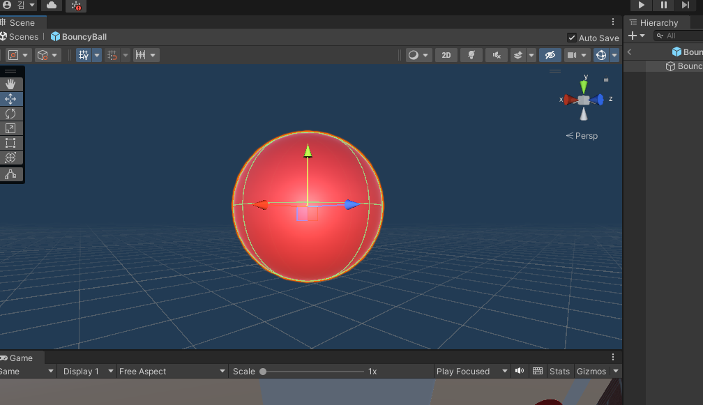 이전에 만들었던 Sphere의 이름을 BouncyBall로 변경합니다.