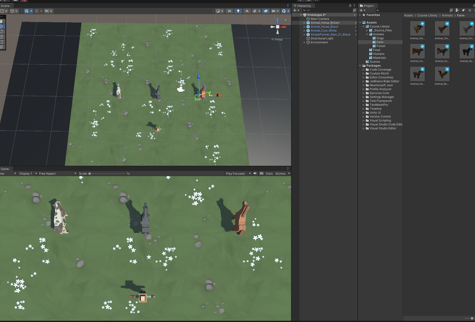 동물은 Assets > Course Library > Animals에 있습니다. 저는 Farm 에 있는 동물들로 하겠습니다.