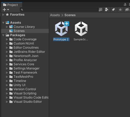 Scenes 폴더에 들어가 Prototype2 씬을 실행합니다. SampleScene을 삭제해두는 것을 추천드립니다.