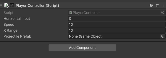 이제 플레이어 프리팹에 projectilePrefab 프로퍼티가 생긴 것을 확인할 수 있습니다.