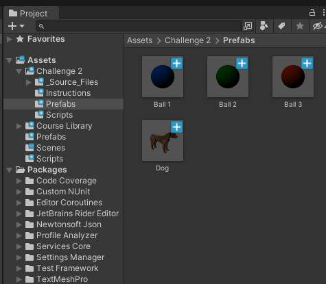 역시 전부 강아지가 설정되어있네요. 세가지 랜덤한 공이 나오기로 되어있으니 프리팹에 공이 있는지 확인해봅니다.
