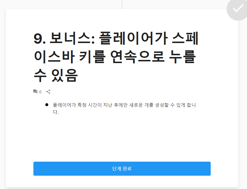 마지막 문제입니다! 스페이스바를 연속으로 누르지 못하게 해달라고 합니다.