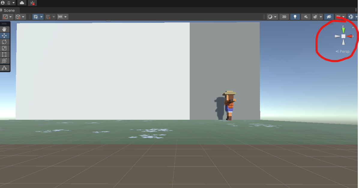 혹시 모르니 씬 뷰의 Axis 기즈모를 확인해봅시다.