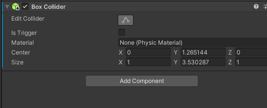 장애물도 충돌 판정을 만들기 위해 BoxCollider 컴포넌트를 추가해준 뒤 Collider를 수정해줍니다.