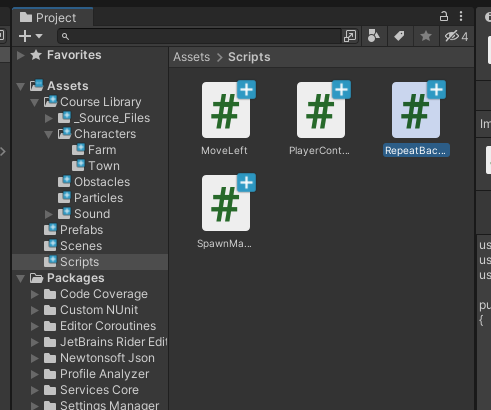 그리고 RepeatBackground 스크립트를 다음과 같이 정리합니다.