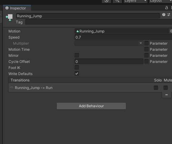 Running_Jump의 Speed를 0.7정도로 수정해봅시다.