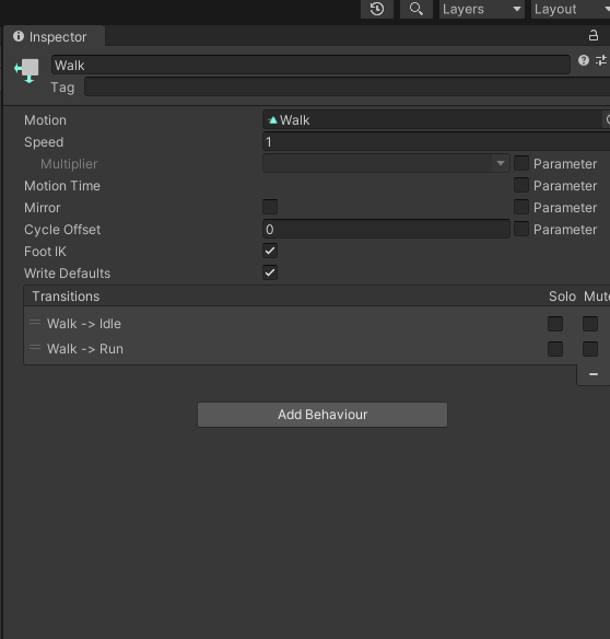 Idle을 누르고 Transactions에서 Idle -> Walk를 클릭해봅시다.