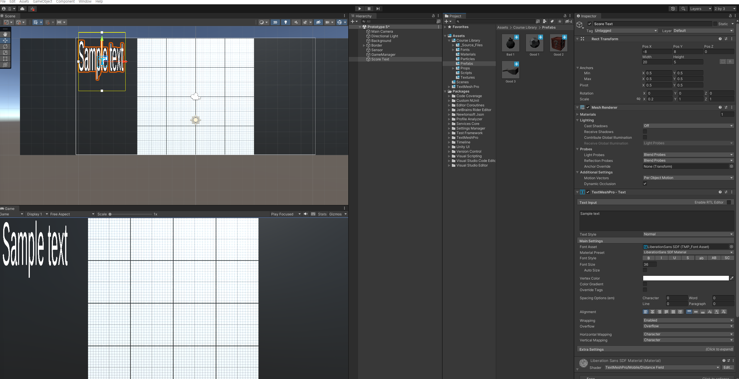 Score Text가 게임 창에서 잘 보이도록 크기를 줄입니다.