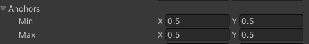 Anchors는 X와 Y의 각각 최솟값과 최대값을 가지고 있습니다. Anchors를 조절하면 게임 화면의 크기를 조절했을 때 버튼이 이동하거나 크기가 조절되는 비율을 조절할 수 있습니다.