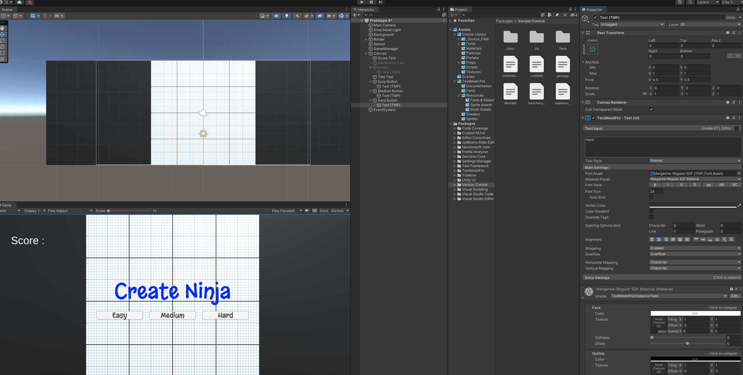 이제 Restart 버튼을 3개 복사하여 각각 Easy Buttton, Mideum Button, Hard Button으로 제작합니다.