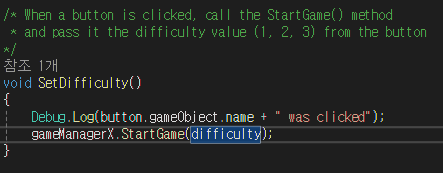 difficulty를 인자로 StartGame 함수를 수행하도록 합시다.