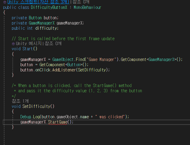 흠 이 경우에는 버튼 별로 할당되어있던 difficulty 변수를 확인해 볼 필요가 있겠습니다.