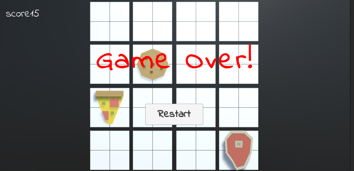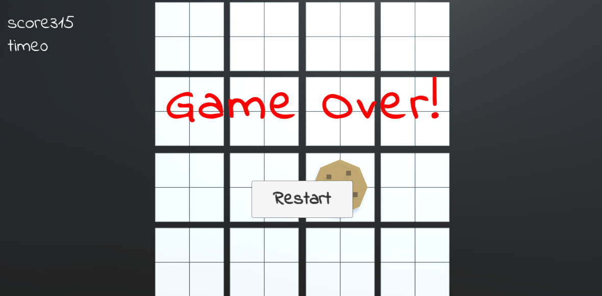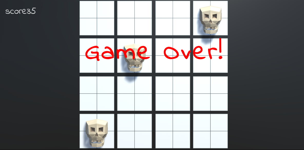 코루틴을 사용해서 무작위로 생성되는 해골을 피해가며 그리드에서 생성되는 음식을 맞추는 게임 같습니다. 인터페이스에 대한 문제를 해결해야 하는 것이 큰 관건인 것 같습니다.