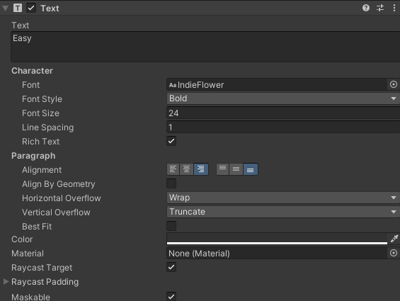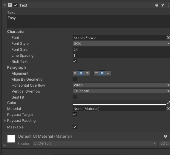Easy 버튼을 대표로 살펴보니 Alignment 즉 조정이 우측 하단으로 되어있는 것을 볼 수 있습니다.
