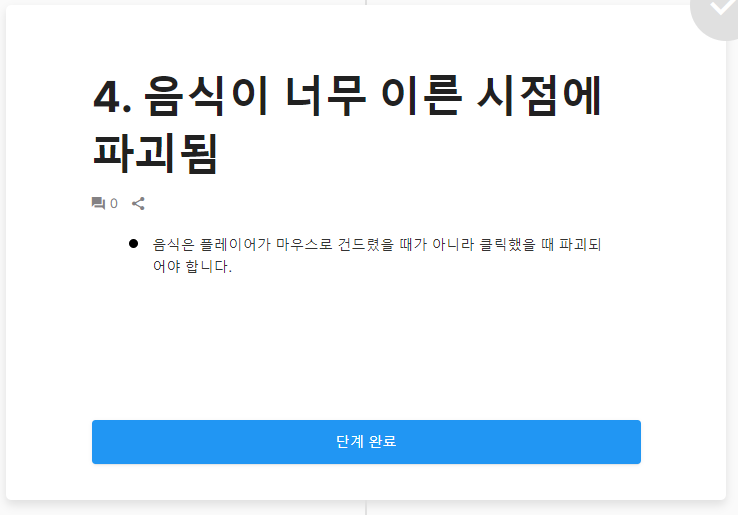 3. 음식을 클릭하면 음식이 파괴되고 왼쪽 상단의 점수가 업데이트됨