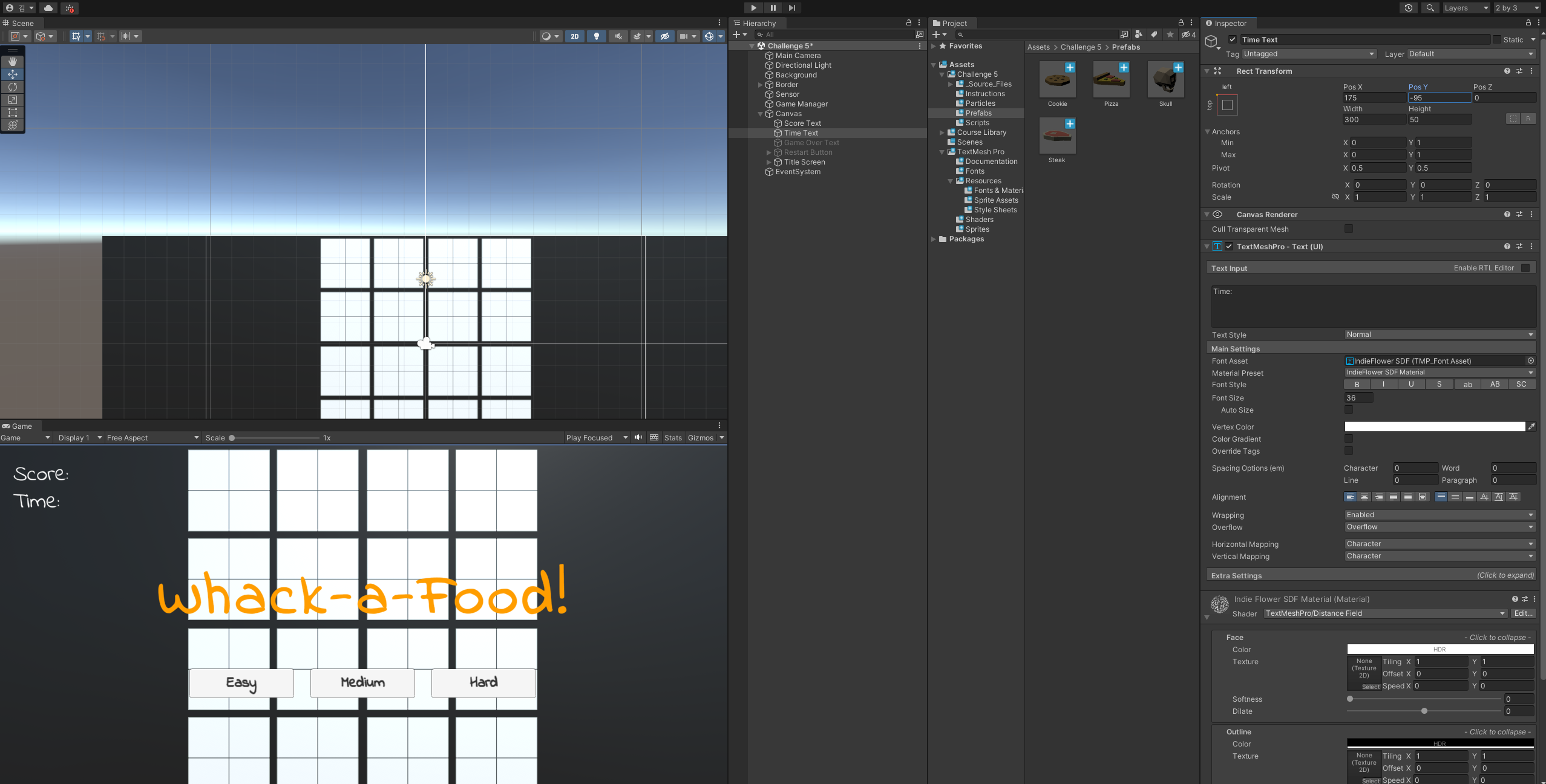과제 개요: 두더지 잡기 게임처럼, 해골을 피해 가며 그리드에서 생성되는 모든 음식을 맞히는 과제를 통해 사용자 인터페이스 기술을 연습해 보세요. 버튼, 마우스 클릭, 점수 추적, 재시작 시