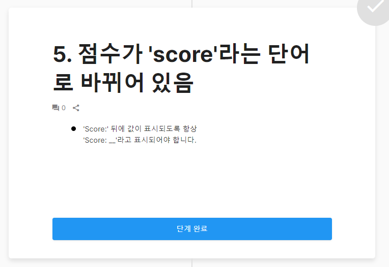 저런 score로만 업데이트가 되고 변수가 작성되지 않네요. + score를 사용해서 점수가 출력되는 문자열로 변경합시다.