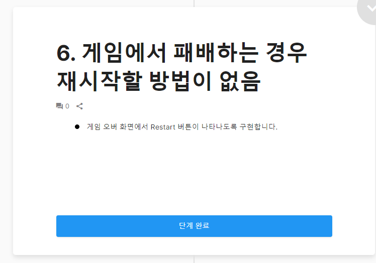 4. 게임에서 패배하면 다시 플레이할 수 있는 Restart 버튼이 나타남